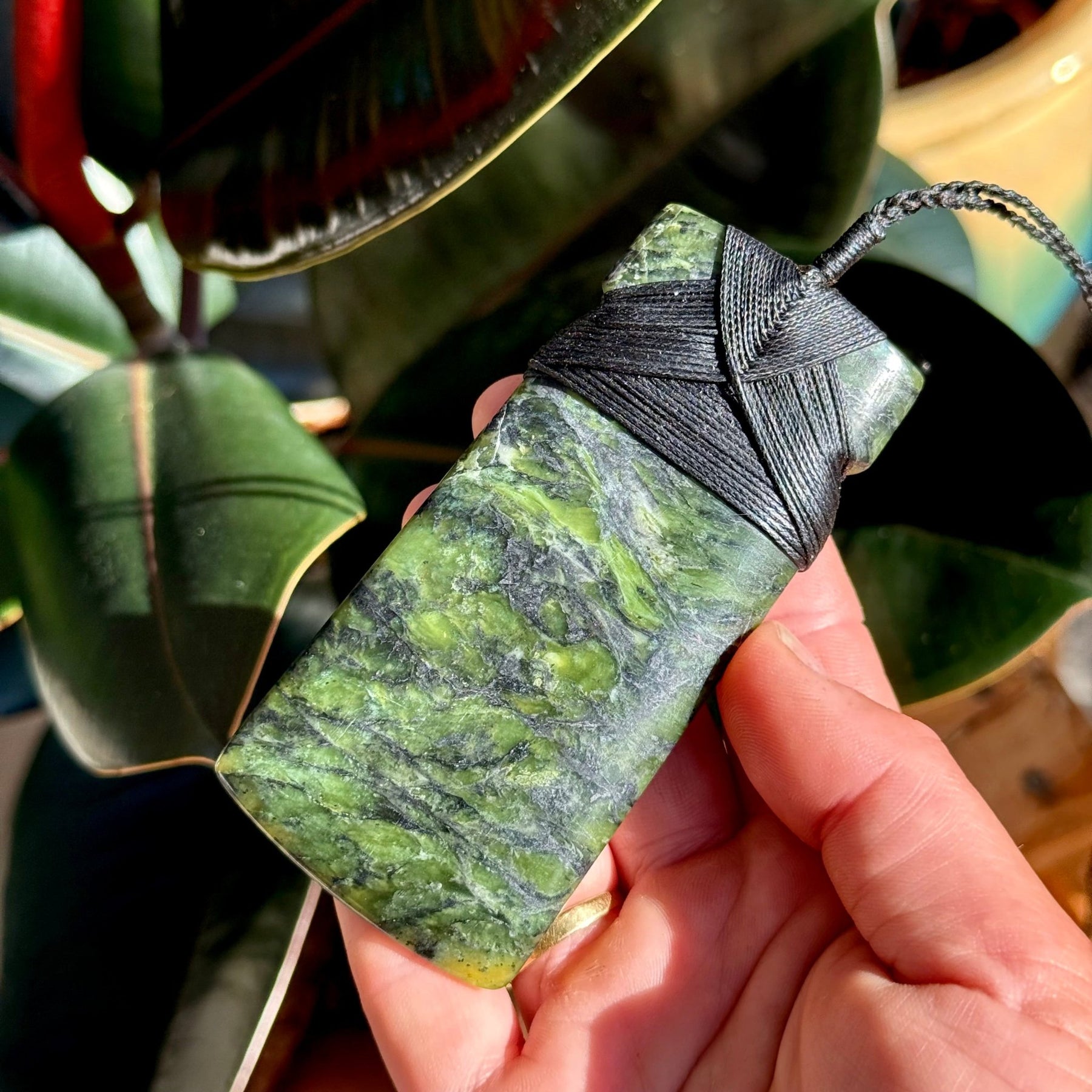 A South Westland Serpentinite / Pyroxenite from deep in the Haast Mountains. Translucent greens with shimmering gold inclusions.