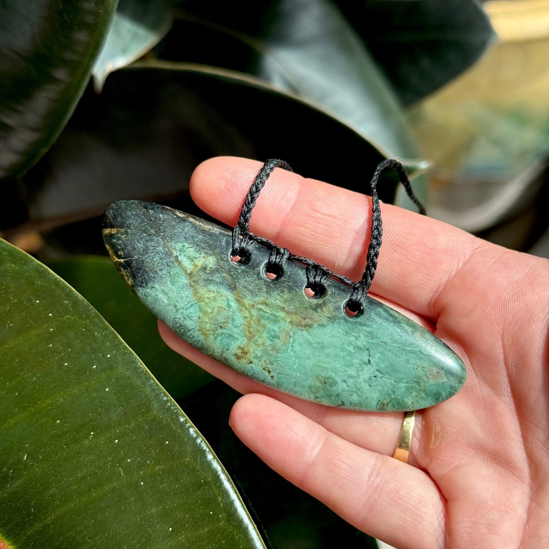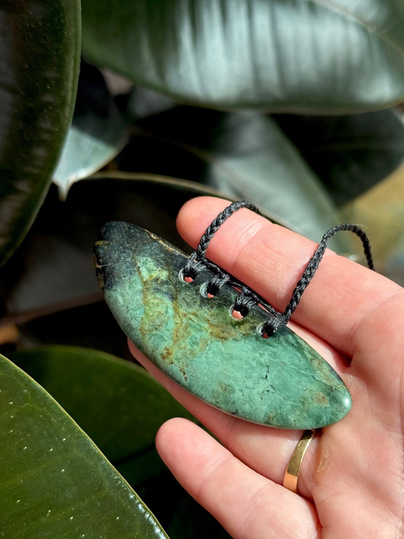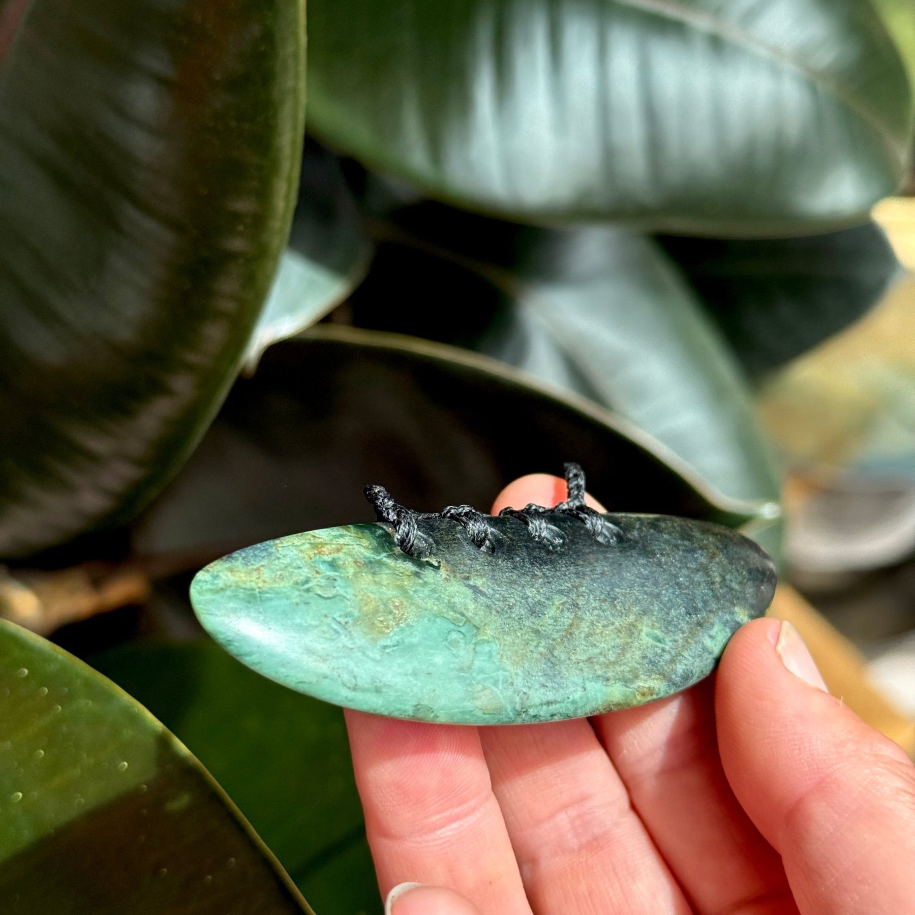 Sometimes porous, serpentinite can absorb oils from your skin and its colour may deepen over time - this should not be seen as a flaw but as part of the stone’s natural evolution with its wearer. ( it will darken this stone)
